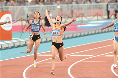 女子100米决赛中,浙江宁波的16岁“小孩姐”陈妤颉后半程直接跑出无人区,以11秒10轻松夺冠,斩获个人首枚全运会金牌,她也是全运会最年轻的百米冠军。这一成绩也打破了亚洲女子百米青年纪录。
