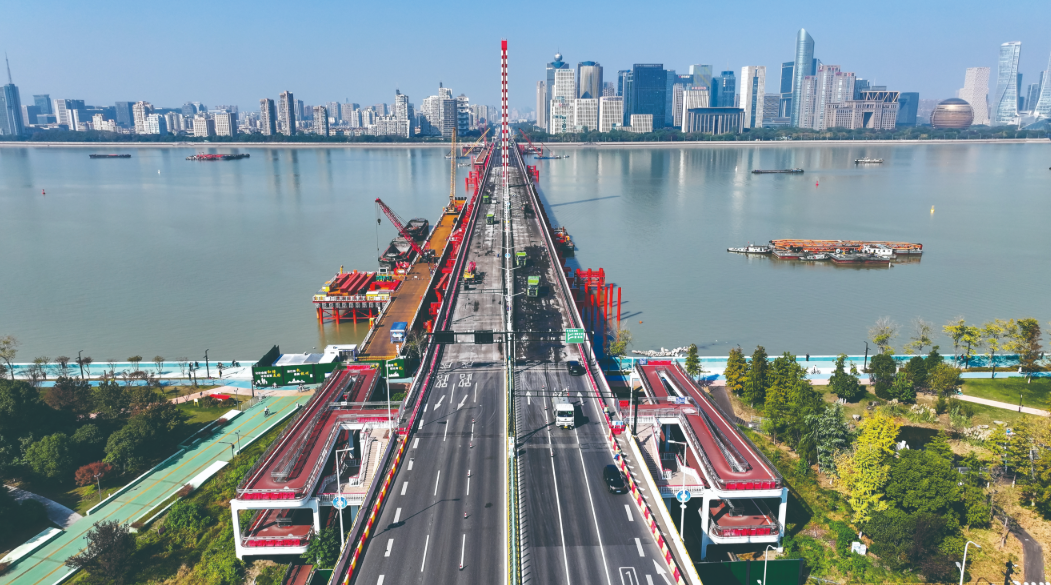 11月22日0点,伴随通往钱江三桥的匝道口一一摆上围挡,钱江三桥正式进入全封闭断流施工。根据钱江三桥改建提升工程总体计划,建设内容主要包括旧桥拆除与新桥建设,计划于2027年12月底建成通车。新桥采用双层桁架结构,设计通行能力将达18.5万辆每日。这是昨天启动封闭施工的钱江三桥。