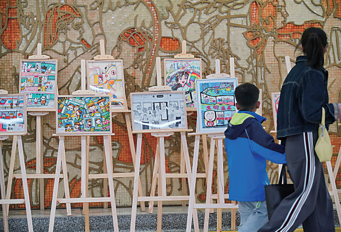 近日,杭州地铁“文明乘车日”系列活动启幕。活动集沉浸式打卡、彩虹课堂、主题画展于一体,以多元形式传递“上车往里,文明有礼”的公益倡议,邀市民共赴与城市温度的双向奔赴。活动中,600余幅中小学生的童真画作在火车东站(东广场)站、市民中心站、江汉路站的主题“童画展”集中展出,成为站厅内一道亮眼的风景线。这是昨天市民在市民中心站K口附近观看主题“童画展”。
