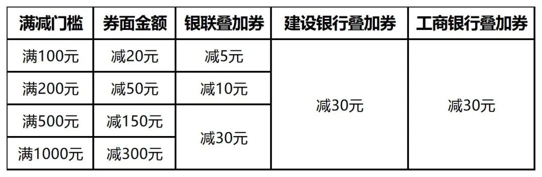 银联叠加券:单人单日限领1张,3种券累计限领取和核销6张,券有限期3*24小时;