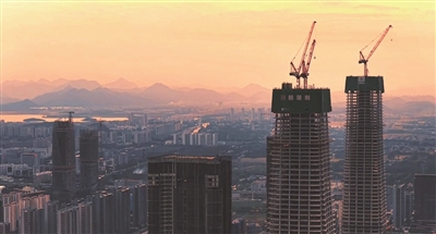 在此之前,“金手指”B塔也完成了结构封顶,建设推进到了约300米,加上去年就已封顶的C、D双塔,云门中心实现了整个项目的全面结顶,以完整的摩天矩阵,成为杭州新中心“世界级城市中轴线”起点的全新天际地标。