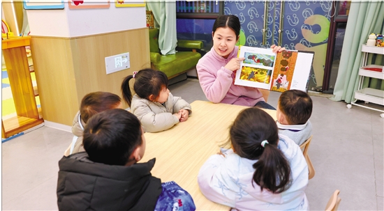 鲸之大托育园的保育员正在陪伴孩子读绘本。 本报记者 周逸 摄
