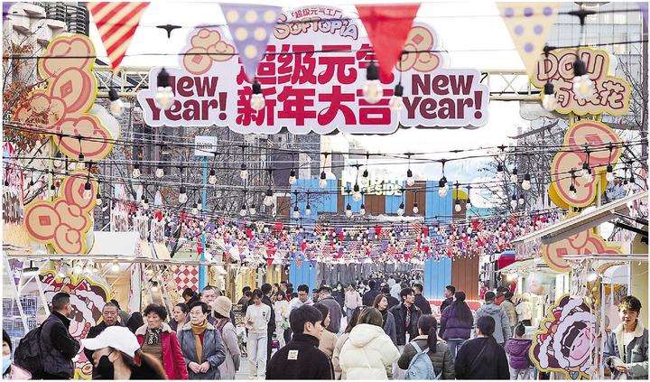 杭州日报讯 12月17日,2025年进入岁末倒计时,湖滨步行街的“超级元气”市集已换上了“新年大吉”的盛装,各种喜庆饰品、文创潮玩、特色美食等摊位一溜排开,营造起喜迎新年的浓浓氛围。