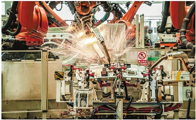零跑科技的焊接车间,机械臂正进行作业(资料图)。记者 王毅 摄