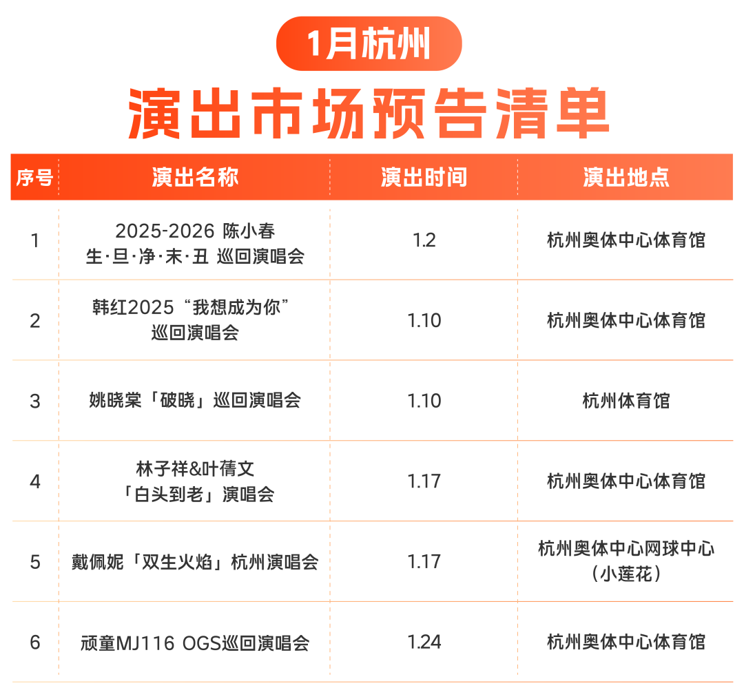好消息!2026年1月,杭州新一批演唱会官宣定档,来看看有你期待的演唱会开唱吗?
