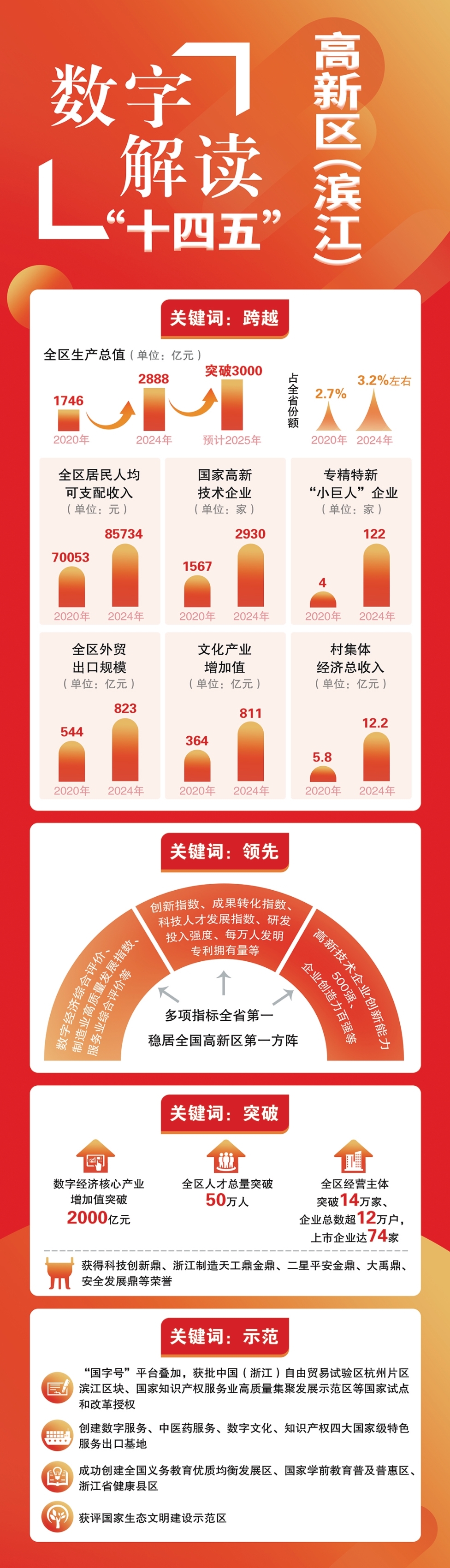 “十五五”期间,高新区(滨江)将更加突出融入区域发展战略、创新驱动发展、进一步全面深化改革、增进民生福祉和发挥辐射示范带动作用,在七个关键领域取得标志性成果——