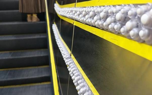 上行扶梯的两侧装了一排大小不一