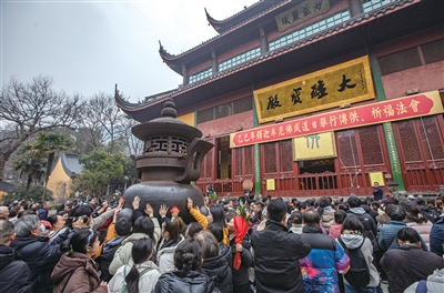 昨天上午,游客在灵隐寺参观祈福。 记者 陈中秋 摄