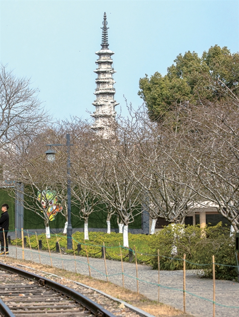 白塔公园,白塔与铁轨。