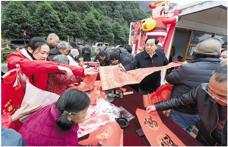 2月1日,建德市莲花镇第七届年俗文化活动在戴家村火热开启,慕名而来的游客与当地百姓一起逛年味市集、看乡土画展、玩传统游戏、吃乡村百家宴、选购“莲花有礼”大礼包,体验集味觉、视觉与欢乐体验于一体的美丽乡村迎新春民俗盛会。据了解,莲花镇青创中心为这场盛会注入了清新的创意活力,通过可看、可品、可玩、可感的多元体验,立体展现乡土文化的传统魅力,共同擘画乡村振兴的崭新图景。