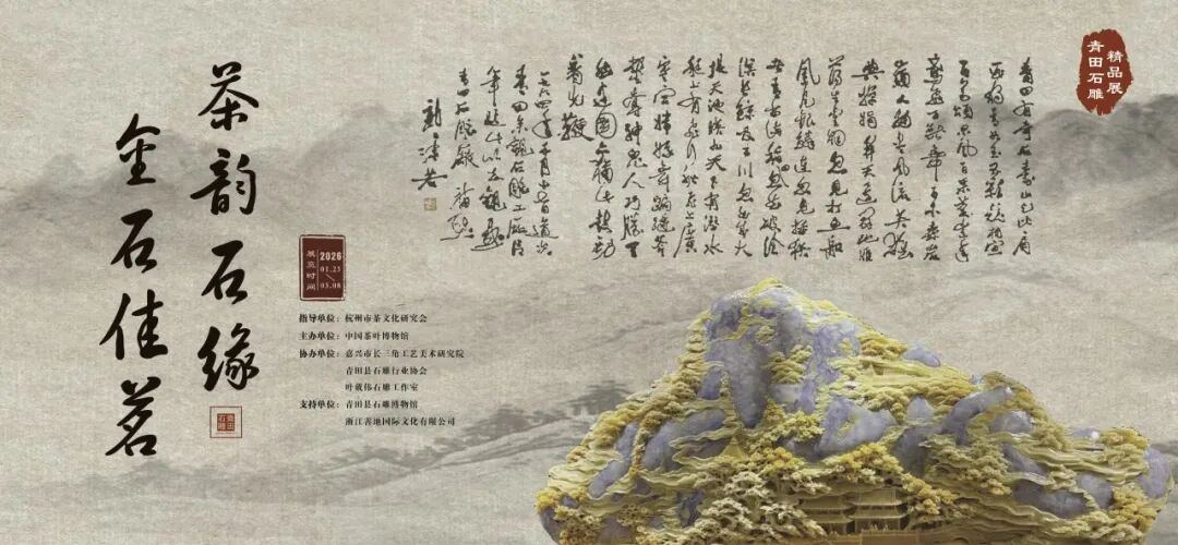 展览以“茶韵石缘・金石佳茗”为主题,汇聚青田传统石雕珍品一百余件,构建石与茶交相辉映的艺术空间。从原石的天然肌理到大师的匠心雕琢,从印章的方寸乾坤到传统石雕的百态风情,每一件佳作都诉说着“一石一茗一世界”的东方美学。诚愿以此为媒,让观者于品石赏茶间,触摸国家级非物质文化遗产的永恒温度,体悟中华传统文化的生生不息。