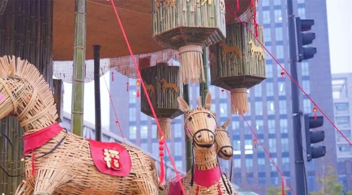 小品以传统竹编技艺为核心工艺,将传统工艺与现代景观设计相结合,并将生肖文化融入景观营造,赋予城市景观独特的文化内涵,装点着杭州街头。