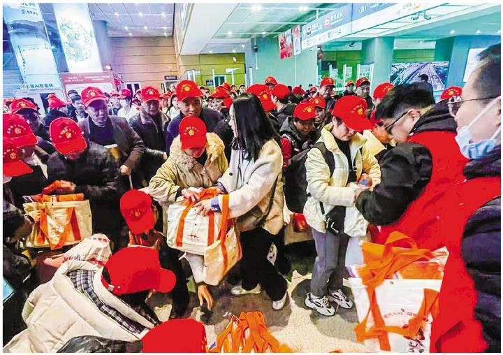 看到迎接的志愿者,不少人笑了,他们的行李里装着家乡的味道,心里装着新一年的盼头,开启新的一年。