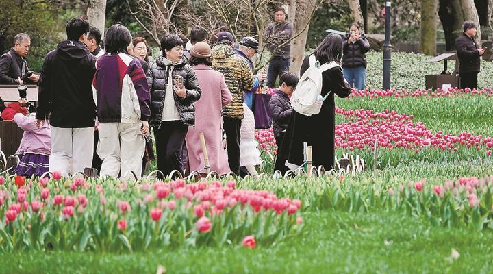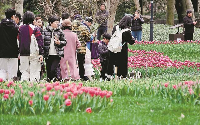 图为在太子湾公园里,已有部分区块的郁金香嫣然绽放,吸引不少市民游客前来先睹为快。据了解,明天起,2026太子湾郁金香花展就将拉开帷幕,在整个三月里,8000平方米种植区内的40万株郁金香及配景草花将渐次绽放,营造出一片艳丽的春日花海。