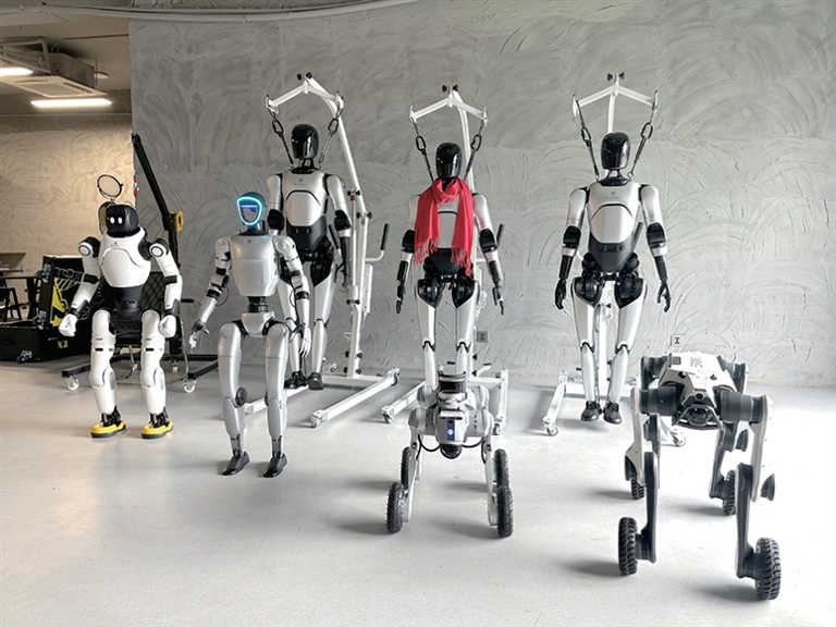 星枢智能位于钱塘区后浪公园产业园,走进办公室,仿佛进了一个机器人“托管班”:宇树科技的G1、智元机器人的灵犀X2、云深处的山猫,还有几只没来得及脱掉表演服的机器狗。