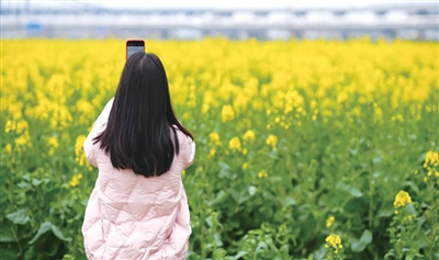 亚奥万象天地附近的油菜花田 记者 徐萌 摄