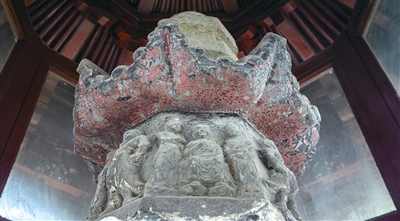 幢身每面均刻《陀罗尼经》,为唐代书法家胡季良所书。隔着玻璃,经幢细节有些看不清,可以贴近,调整角度仔细查看。清代金石学者阮元在《两浙金石志》中称龙兴寺经幢为“杭州金石之冠”,这不光是年份的久远,也是对它艺术性的评价。龙兴寺经幢对研究我省佛教经幢的发展以及唐代经幢建筑、造像、书法艺术等都有重要的价值。