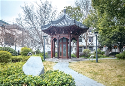很难想象,在闹市区如此不起眼的街边小公园里,就这样屹立着杭城现存最古老的地表建筑。早春时节,亭子旁的玉兰含苞待放,安静的古迹又开启了新的一轮四季更替,仿佛千年只是一瞬。