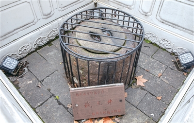 灯芯巷附近有一处吴越遗迹——钱王井,也叫祥符井。这眼井的位置在灯芯巷东北面的人行道上,杭州市科技交流馆门口,旁边就是车水马龙的延安路,不凑近看的话很容易忽略掉。