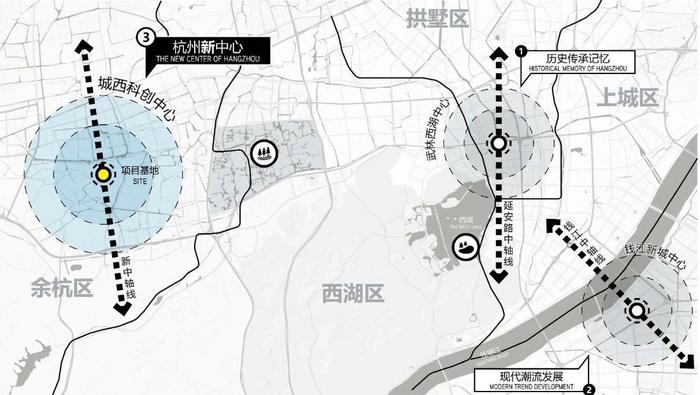 杭州银泰中心,位于杭州市余杭区闲林街道,地处杭州第三中心中轴线的南段,东至创明路,南至规划水域,西至创景路北至规划支路。紧邻余杭国际体育中心、未来国际演艺中心等文化地标;依托地铁 3 号线、5 号线构建立体 TOD 交通网络。