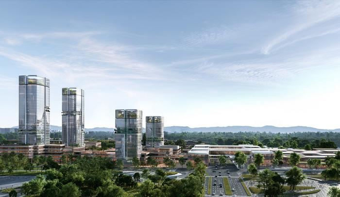 建筑高度由南至北逐步拔升:南面最近湖的地块,建筑高度仅18米;中间地块,建筑高度80米;北面地块,建筑高度140米,规划为两幢地标塔楼。