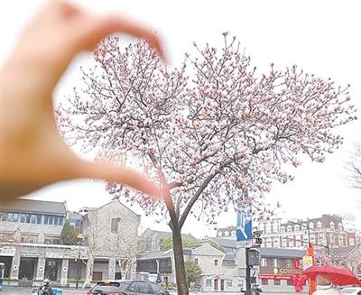 玉兰树下,一位阿姨颇为热情,来来往往的行人只要驻足想和“爱心”玉兰树拍合照,阿姨都会笑着迎上去:“来来来,我帮你拍。”“太漂亮了。”