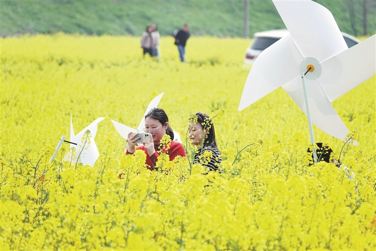 3月15日,在杭州建德更楼街道城南城市田园,600亩油菜花海正进入最佳观赏季,“城南花又开”主题花田集市欢乐开启,赏花海、拍美照、放风筝、花田音乐会等“花田+”新玩法吸引各地游客纷至沓来,共同解锁花田好春光,体验春日消费新场景。3年前,当地政府流转3个村社的连片土地打造城市田园花海,开展农业连片种植和田园运营,设置四季不同的花田主题,布局“以花为媒”的农文旅融合新业态,擘画城乡融合新图景。