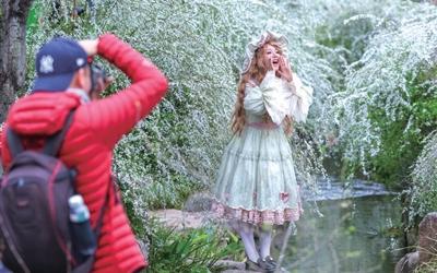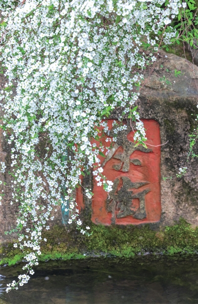 中国茶叶博物馆外喷雪花开得如梦似幻 记者 夏阳 摄