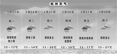 第一个变样是气温大幅提高。杭州市气象台预计,整个3月下旬没有北方冷空气影响,杭州的最低气温都在10℃以上,早晨不会有“冷嗖嗖”的感觉了,白天的最高气温也大都在20℃左右。