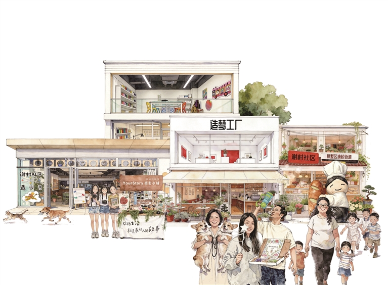 “我们想让年轻人走出家门打破隔阂,既可以在这里创业,又可以来这里社交。”康桥街道谢村社区党委副书记蒋红仙介绍,这个集社交、创业、服务于一体的空间,既是社区居民的“共享会客厅”,更是孵化梦想的“造梦工厂”。