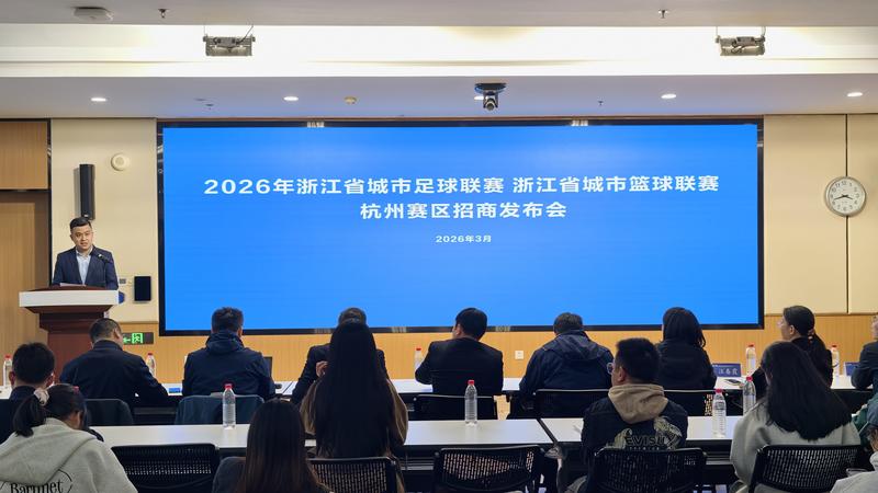 3月27日下午,2026年浙江省城市足球篮球联赛杭州赛区招商发布会在萧山体育中心新闻发布厅召开,杭州市体育局、市足协、萧山区文广旅游局、市体育产业集团等相关领导出席。