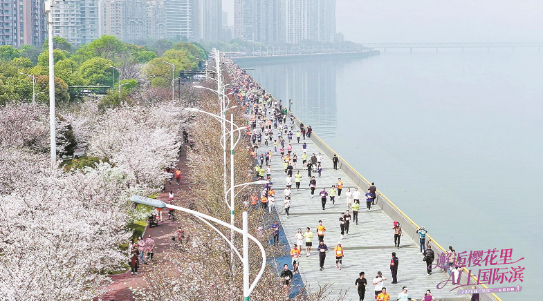 今年,AI让樱花跑趣味更浓,跑者可以到“樱AI而聚”专区实现虚实场景的无缝切换,解锁“二次元奔跑”的全新体验,还可以戴上AR眼镜,点亮虚拟樱花树上的专属花瓣,共绘一棵“十周年纪念樱”。此外,沿着最美跑道,滨江还在各个点位设置了打卡点,丰富市民的文旅消费体验,比如,在钱王射潮雕塑下,设置《太平年》影视主题展位,将滨江文化地标与滨江区文艺精品相融合,让本土文化落地生根。活动当天,该区还举办“樱约奥体 潮玩未来”嘉年华活动,组织“樱JOY市集”“花神巡樱主题巡游”“花Young游园”等系列活动,让市民在沉浸式互动中感受滨江文旅消费的时尚感和烟火气;同时,推出“滨江春季餐饮消费券”,市民可到指定餐饮门店享受优惠。