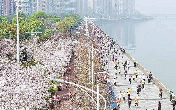 “参加樱花跑,就像是见老朋友。”赵海峰笑着说,自2016年滨江区举办樱花跑活动至今,十年来场场不落下。作为一名运动爱好者,他也常参与马拉松、横渡钱塘江等比赛活动,但樱花跑“特别不一样”,“比起激烈的竞技氛围,樱花跑趣味性浓、景色美,更像是与运动爱好者共赴一场春日派对。”他说。