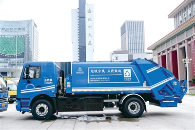 3月27日下午,杭州举行生活垃圾可回收物“蓝桶蓝车”主题宣传活动,宣布全面推广“蓝桶蓝车”回收模式。