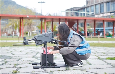 无人机抵达杭钢公园中央的起降草坪,颜女士下单的茉莉奶白送达。