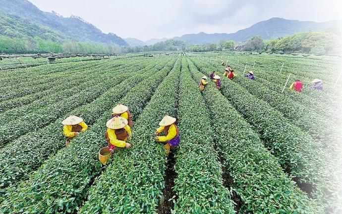 杭州日报讯 近日,西湖景区的龙井茶园里,西湖龙井43号进入采摘旺季,大批采茶工抓紧采摘明前西湖龙井茶。西湖龙井茶历来以清明前采摘的头茶为贵,近期气温适宜、雨水充沛,茶芽生长旺盛,也正是茶农们一年中采茶、炒茶、卖茶的最关键时节。