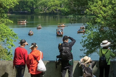 春光明媚,乌龟潭舟楫繁忙。 记者陈中秋 摄