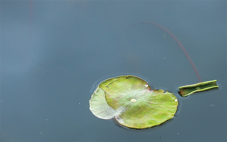 西湖里已经有荷叶冒出水面 记者 陈中秋 摄