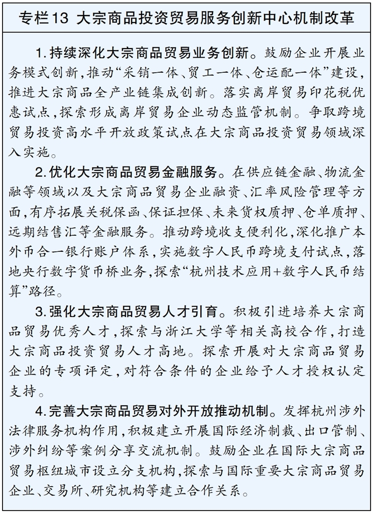 建设国家数据要素综合试验区城市范例,落实国家数据产权登记制度,开展公共数据运营授权政府指导定价国家试点,探索数据要素基础制度创新。探索人工智能国际合作新模式,建设企业出海服务港和出海服务联盟。赋权自贸试验区开展人工智能全产业链创新试点,争取国际标准化组织人工智能工作组落地,畅通国际技术合作转化渠道,推动杭州技术、方案、产品、企业出海。构建人工智能新型生产关系,培育模型即服务、智能服务订阅等新模式,发展多智能体协作、工业仿真等新业态。