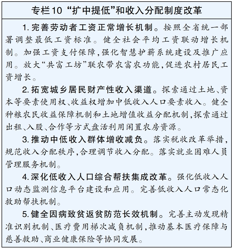 ——共同富裕先行示范实现重大突破,成为促进区域协调发展、城乡一体化发展的样板。唱好杭甬“双城记”、杭州都市圈同城化发展取得重大进展,城市首位度稳步提高。市域东西并进、南北互动的一体化发展空间格局基本形成,西部区、县(市)特色发展动力更加强劲,淳安县退出山区海岛县行列。高质量充分就业取得新进展,居民收入增长与经济增长同步,劳动报酬提高与劳动生产率提高同步,社会保障制度更加优化更可持续,公共服务更加优质均衡,城乡居民收入倍差缩小到1.58左右。