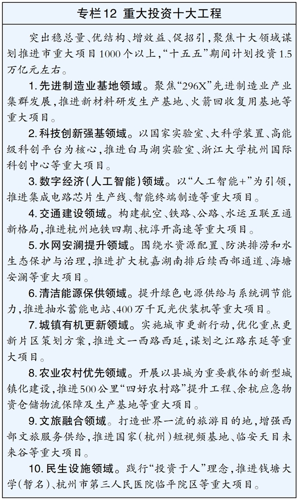 杭州市国民经济和社会发展第十五个五年规划纲要,根据《中共杭州市委关于制定杭州市国民经济和社会发展第十五个五年规划的建议》制定,主要明确“十五五”时期全市经济社会发展的思路目标、主要任务、重大举措,明确政府工作重点,引导规范市场主体行为,是我市奋进中国式现代化的发展蓝图,是全市人民共同奋斗的行动纲领。
