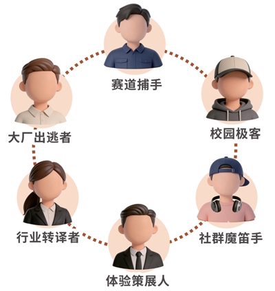 报告显示,OPC创始人的画像被归纳为六类人群:大厂出逃者、赛道捕手、校园极客、行业转译者、体验策展人、社群魔笛手,覆盖了从技术到内容、从专业服务到消费市场的广泛创业路径。