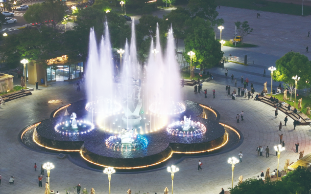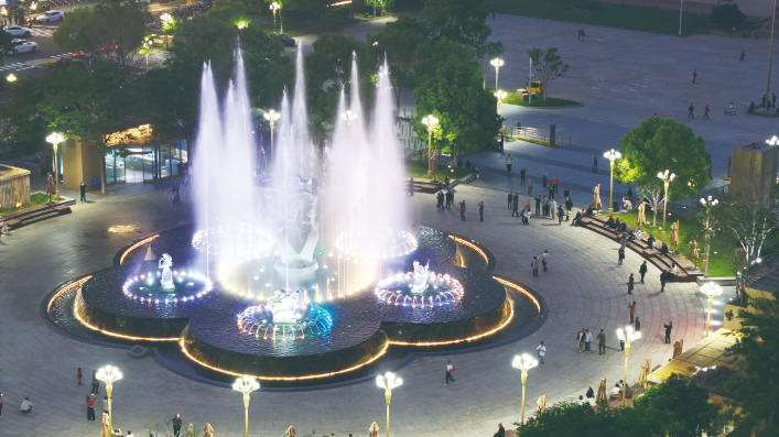 为适配季节变化与市民夜游需求,从4月15日至9月30日,杭州正式启用春夏季景观亮灯及光影表演时间安排,比起秋冬季灯光安排推迟了一小时。核心区域灯光不打烊,其他区域错峰亮灯!精准匹配客流高峰,让光影浪漫不缺席。图为昨晚亮灯的武林广场音乐喷泉。