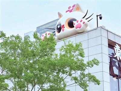 今年年初,金沙湖北侧一幢商业小楼的楼顶上,立起了一个巨大的猫造型装置。湖畔的井盖画上了猫的彩绘,座椅也变得“猫猫化”。公园南侧还专门开辟了一块“宠物友好区域”,架了供宠物攀爬的器械,设置了宠物冲洗区。