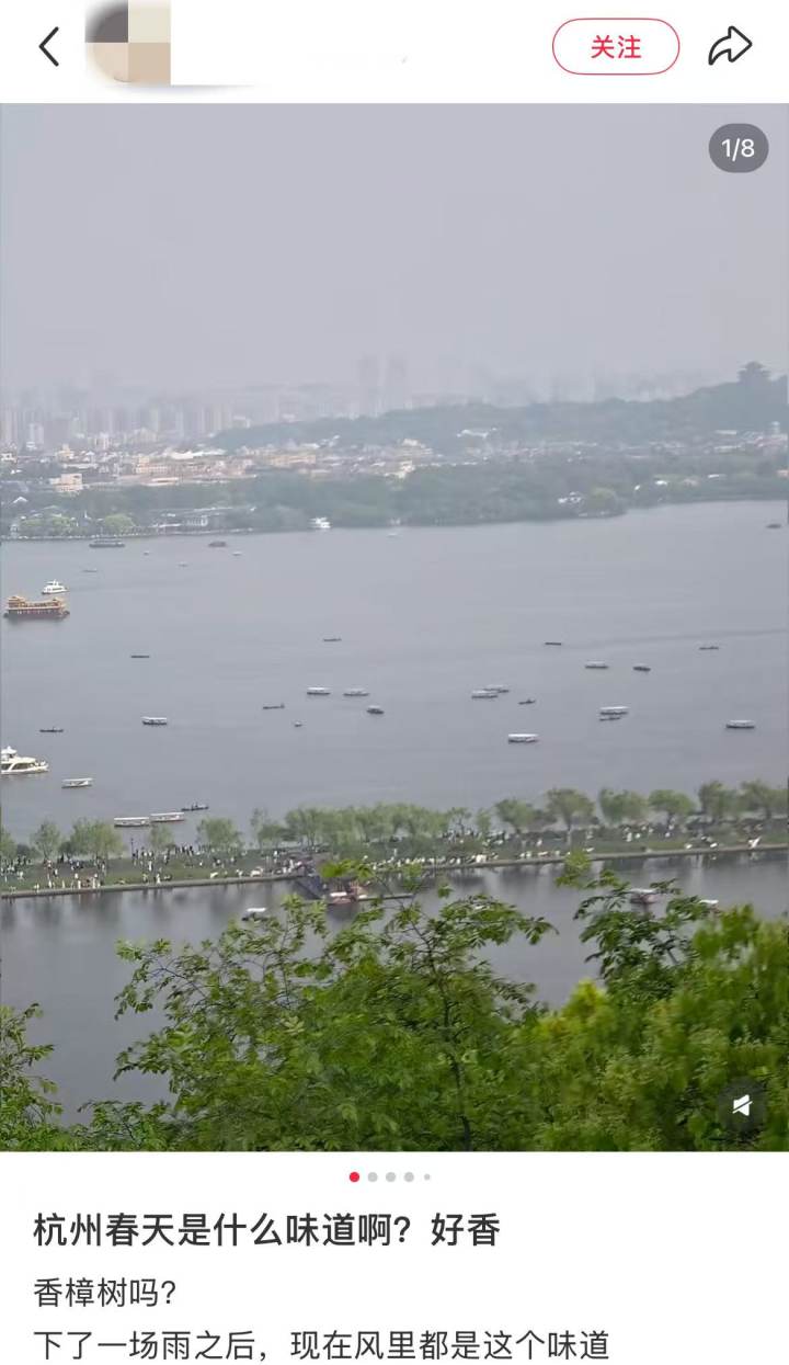 也有的问:“杭州春天是什么味道啊?好香。香樟树吗?下了一场雨之后,现在风里都是这个味道。”