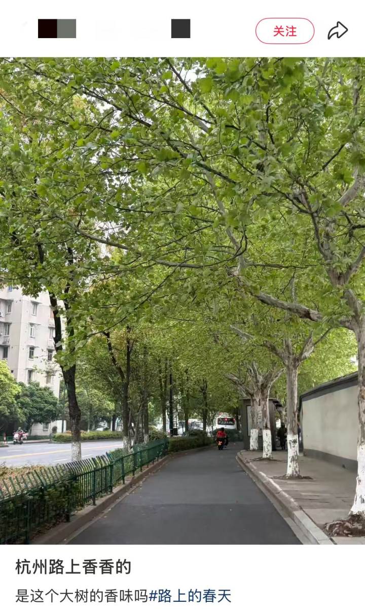 有网友说:“四月的杭州,满眼新绿……太好闻了,是香香的杭州哎”“杭州路上香香的。”