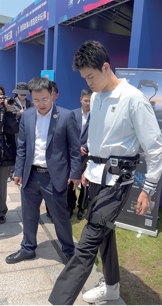 “穿上这个外骨骼,我感觉脚变轻了,像在走太空步。”