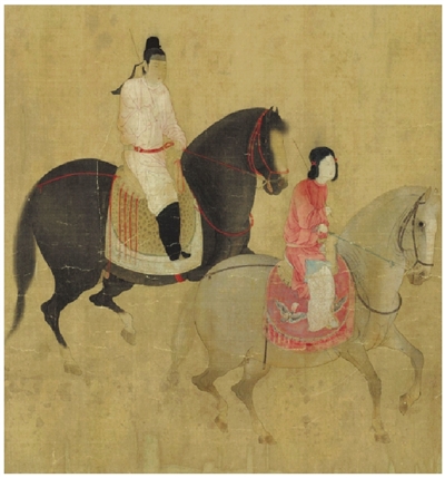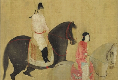 北宋 赵佶(传) 《摹张萱虢国夫人游春图》(局部) 元祐元年(1086年),苏轼在汴京任中书舍人时,偶得一卷《虢国夫人夜游图》,一时兴致盎然,挥笔题诗:“佳人自鞚玉花骢,翩如惊燕蹋飞龙。” 其实不止苏轼,古往今来,人们赏画时总偏爱驻足看马,究其原因,皆因马在画中从不是单纯的陪衬,而是藏着太多深意与美感——它可衬人物气度,可显时代气象,可寄文人情怀。 盛唐马影: 一骑踏春,现皇家风华 说到画马,唐代张萱的《虢国夫人游春图》,便是经典之一。《宣和画谱》记载,张萱曾绘《虢国夫人夜游图》《春游图》《踏青图》,如今仅存《虢国夫人游春图》一卷,也正是苏轼当年题诗所念画作的“姊妹篇”。 和顾闳中画韩熙载一样,张萱仔细地把他的所见所闻尽量真实地画了下来。这位擅长以精细的手法描摹贵妇的画家,像拍照片一样,细心地刻画图中每样事物的细微差别。 他画了图中每个人的打扮和衣衫:堕马髻,双环垂髻,豆青色鸾凤团花衫,胭脂色描金团花裙,白色花巾——真是好一场马上时装秀。八匹马中,四匹有踢胸(球状红缨),两匹是三花(马鬃梳成三垛的王室用马)。 三花,是御用马。宋代郭若虚在《图画见闻志》中曾专门解读“三花马”,其记载云:“按白乐天诗,‘剪鬃三花枥上嘶’,知三花马者,乃剪马鬃为三辫而成形也。” 苏轼的《书李将军三鬃马图》里就说得更为详细,他起先看了李思训的《明皇摘瓜图》上唐玄宗骑着三鬃马,不明白三鬃马是什么意思,后见岑参《卫节度赤骠歌》里有“苏髯胡雏金剪刀,平明剪出三鬃高”之句,方才晓得三鬃马就是将马鬃剪成三个凸起的花瓣样,只有御马才能剪,剪成三鬃的较多,也有剪成一鬃和五鬃的。 张萱把八匹马其中的一副马鞍画得精美无比,上面有正伸爪扑攫的猛虎和五彩鸳鸯。而其他的马鞍都草草带过。 猛虎伸爪扑攫,与人相搏,正是虢的本义。 “虢”字最早见于商代甲骨文。康殷在《文字源流浅说》一书中说:甲骨文中的“虢”字,其象形文字是——右边一只虎,左边为一兵器“戈”,有徒手搏虎之意。 这个马鞍上有虢纹的人,正是右第一人。看起来是个男子。仔细看,这个骑三花马的人,是整个长卷里最淡定、最强大、最无羁的人。 再细看,张萱在画中还藏了更多“众里寻她”的暗示,比如,这身豆青色鸾凤团花衫上的“虬龙鸾凤”是皇家专用;此人身上的腰带有铊尾;此人的鬓发丰厚蓬松不似男性;只有此人马鞍后的带子因无所顾忌快跑而飘起来,等等。 这卷画里的马,绝非单纯的坐骑,而是盛唐风华的载体:三花马的御用规制、马鞍上的纹样、骑行的从容姿态,都藏着那个时代的华贵与张扬,也为宋代文人留下了回望盛唐的窗口。 大宋马韵: 五骥留白,载文人风骨 如果说张萱笔下的马是“盛唐的盛装”,那么宋代李公麟《五马图》中的马,更有耐人寻味之处。 《五马图》上的五马,俱英姿焕发。据说,《三马图》也是李公麟所绘,画仅余残片,但苏轼为它写的《三马图赞》却流传了下来: 绍圣四年三月十四日,轼在惠州,谪居无事,阅旧书画,追思一时之事,而叹三马之神骏,乃为之赞曰:吁鬼章,世悍骄。奔贰师,走嫖姚。今在廷,服虎貂。效天骥,立内朝。八尺龙,神超遥。若将西,燕昆瑶。帝念民,乃下招。籋归云,逝房妖。 苏轼写《三马图赞》时,已年过花甲,于惠州谪所偶然翻到《三马图》,十年间旧事滚滚而来,他感慨三马虽神骏,竟不遇于时。 后世学者根据《三马图赞》,猜测“三马”便是《五马图》里的“凤头骢”“照夜白”“好头赤”。 《五马图》借用的是“职贡图”的图式——“职贡”,指诸侯或藩属国按照其身份和地位,定期向中央王朝进献地方特产,中央政权亦以此维系“天下秩序”。 李公麟以他天才的白描手法,将原本可能干巴巴的职贡图画成了“白描第一神品”,仅仅凭一根墨线,马的丰腴、健硕便触手可抚,马和人的神态俱各有不同——右第一匹,最为高大,几与奚官(注:古代官名,掌管宫廷马政)等高,随奚官缓步慢行;右第二匹略矮小些,从容静立,牵引着它的奚官略微侧身,表情和马一样平静顺从;右第三匹最为扎眼,是匹赤马,牵马人袒衣露臂赤足,大胡子,左手抓着一把给马洗澡的马刷;右第四匹是白马,在红色缰绳映照下简直晶莹发亮,牵着它的奚官正和马一起大步往前;最后一匹,在所有马中最为桀骜,似乎正在昂首长嘶,牵着它的奚官紧张地看着它,手里的马鞭随时欲落……这匹不服管的马,经后世考证,很可能就是“满川花”。 除了“满川花”,前四匹也都有名字,这些名字,来自黄庭坚在每匹马旁边的题签。 “凤头骢”旁:“右一匹,元祐元年十二月十六日左骐骥院收于阗国进到凤头骢,八岁,五尺四寸。” “锦膊騘”旁:“右一匹,元祐元年四月初三日左骐骥院收董毡进到锦膊騘,八岁四尺六寸。” “好头赤”旁:“右一匹,元祐二年十二月廿三日于左天驷监拣中秦马好头赤,九岁,四尺六寸。” “照夜白”旁:“元祐三年闰月十九日,温溪心进照夜白。” 黄庭坚在《五马图》后这样写:“此马驵骏,颇似吾友张文潜笔力,瞿昙所谓识鞭影者也。”他说,李公麟笔下良马的神骏,恰似张耒(字文潜)的雄健之笔,伯时(李公麟字)啊,就是那匹悟性最高的千里马啊。《宣和画谱》对李公麟的画格有着极为具体的评价,“以立意在先,不为筆墨所役。” 绍兴元年(1131年),曾纡在真如寺再见《五马图》,百感交集,自念
