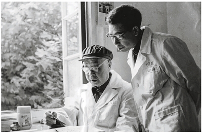 1985年,袁昌益先生(1907年-1987年)与陈金龙一起分析医案