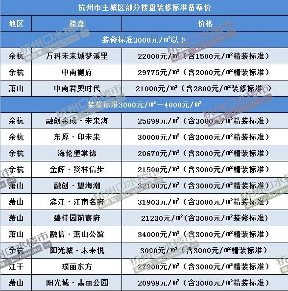 开发商3k+的装标到底包含什么?杭州精装楼盘装修备案价一览